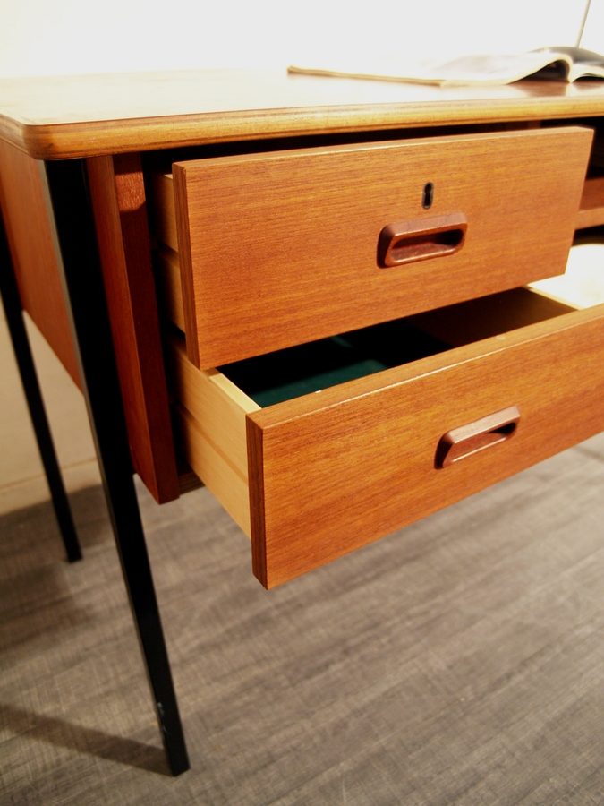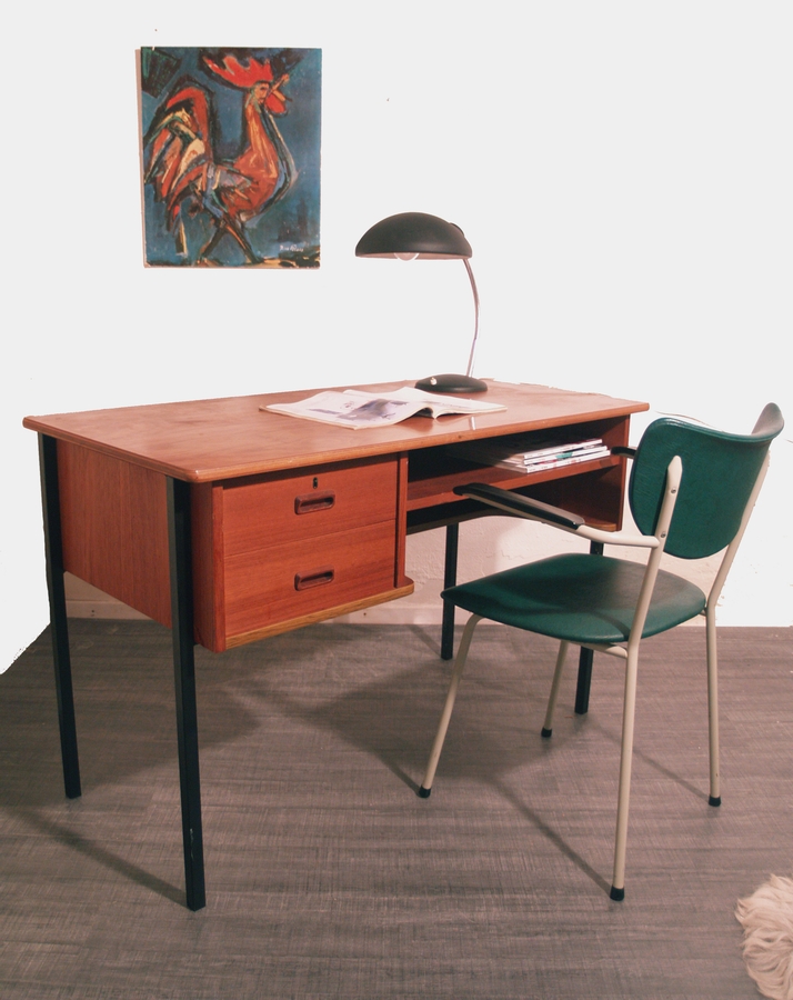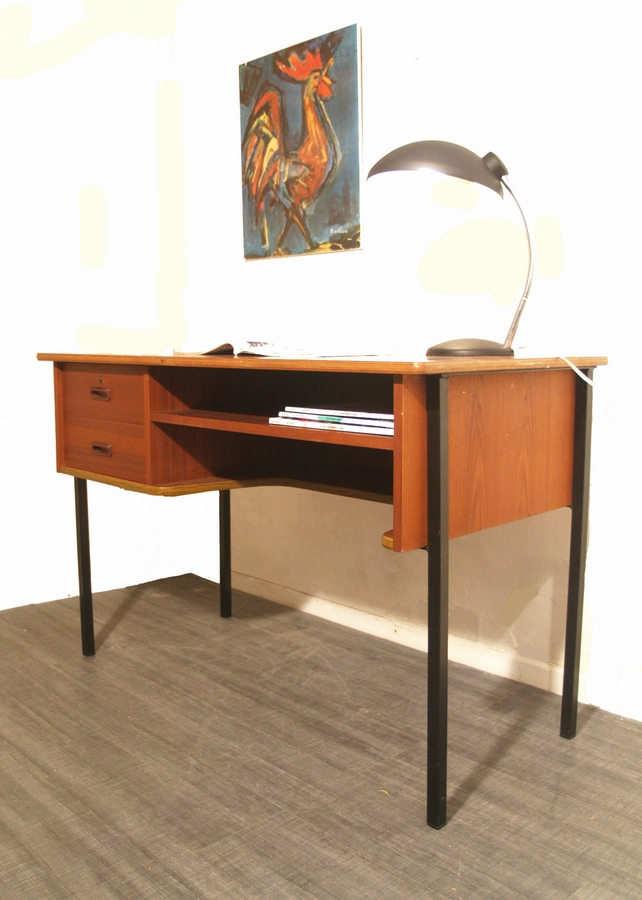 Jaren 60 bureau in teak met zwart metalen frame -d3168